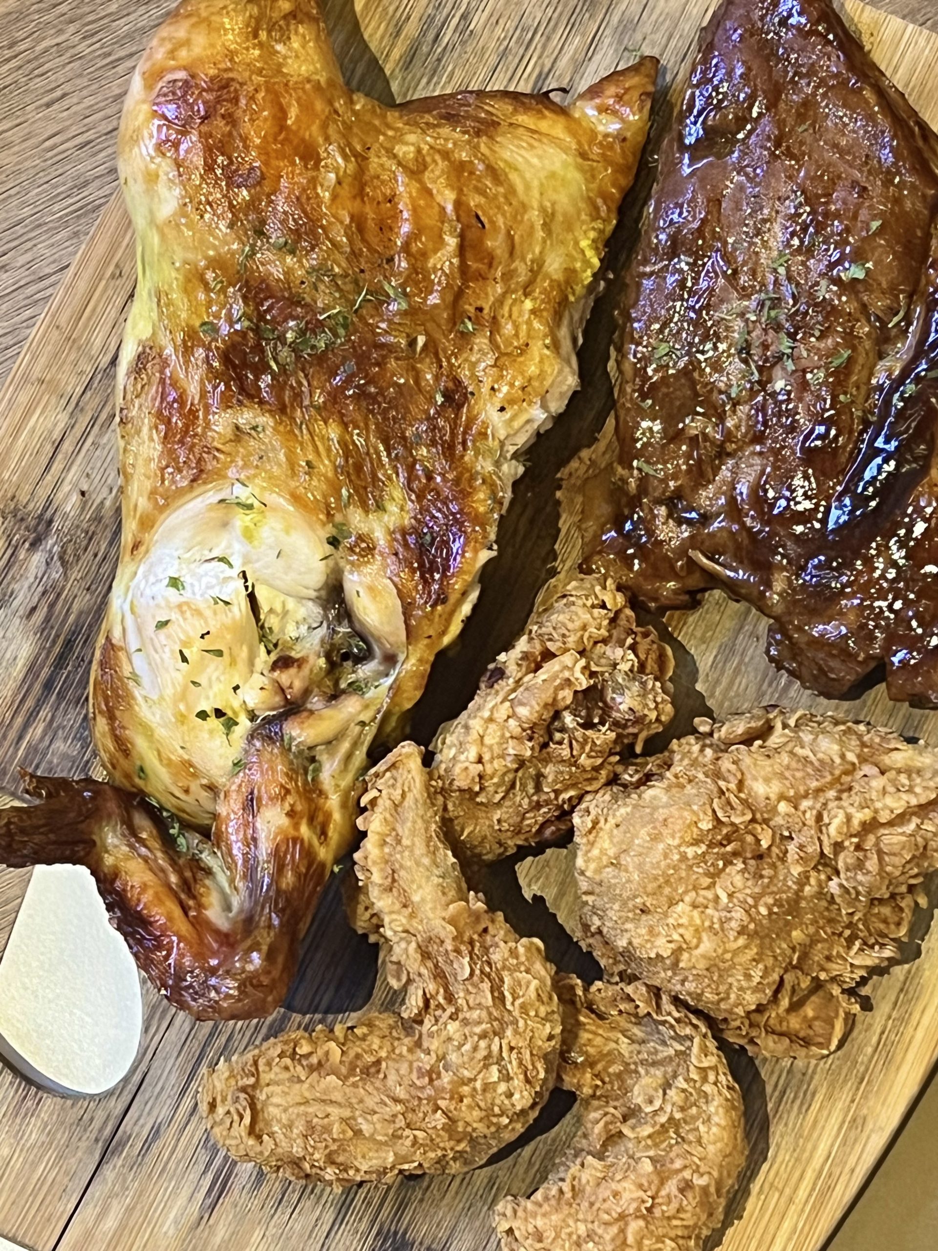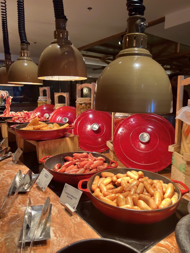 The highlight of the stay was a laid-back dinner made for sharing. The table featured comforting favorites such as charcoal chicken, tender pork ribs, and crispy wings, paired with hearty sides including creamy macaroni, roasted potatoes, mashed potatoes, and buttery corn with carrots.