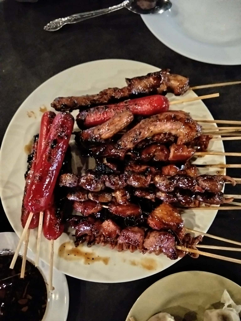 Surrounded by festive blue and white holiday lights, her family shared a cozy dinner filled with grilled skewers, sausages, noodles, rice, and siomai. The evening was unhurried and heartfelt—centered on togetherness, gratitude, and the simple joy of being with loved ones.